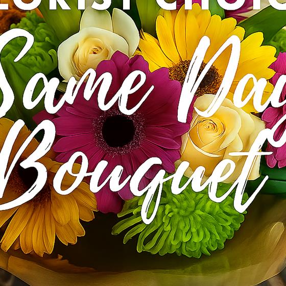 A same day bouquet designed using seasonal flowers we have in stock, arranged in the colours you select. Each one is made to order and crafted by our florists for fast local delivery. Your florist choice same day bouquet is prepared and delivered fresh with care by us, direct by hand.
