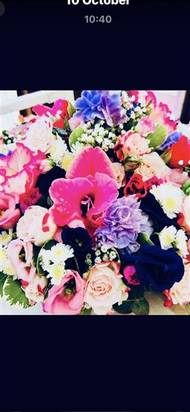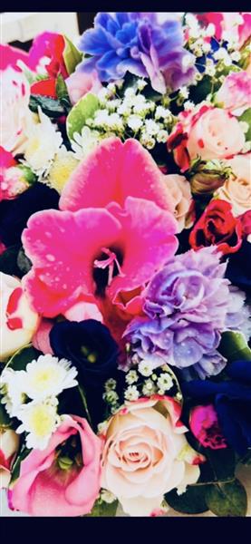 lovely posy, include carnations, roses, gladioli etc